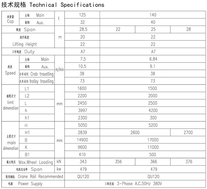 YZ型125、32~140、40t铸造起重机