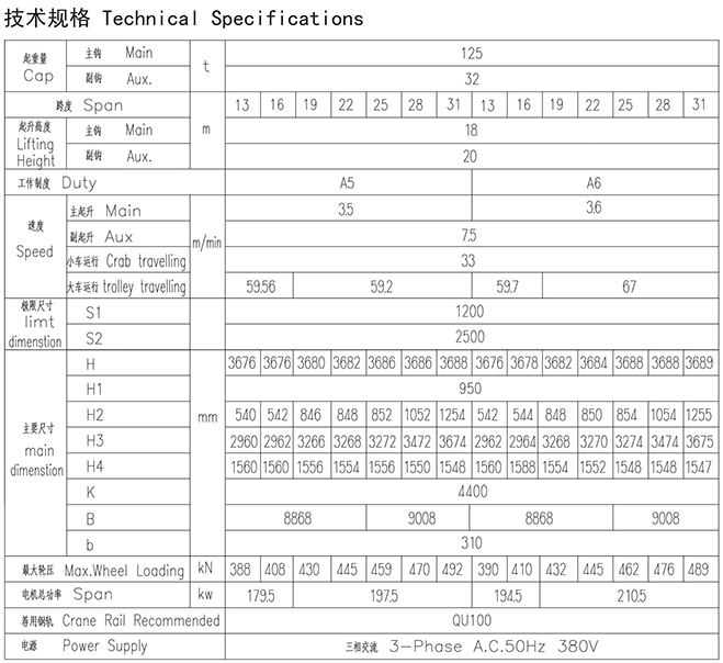 QD型125、32t吊钩桥式起重机